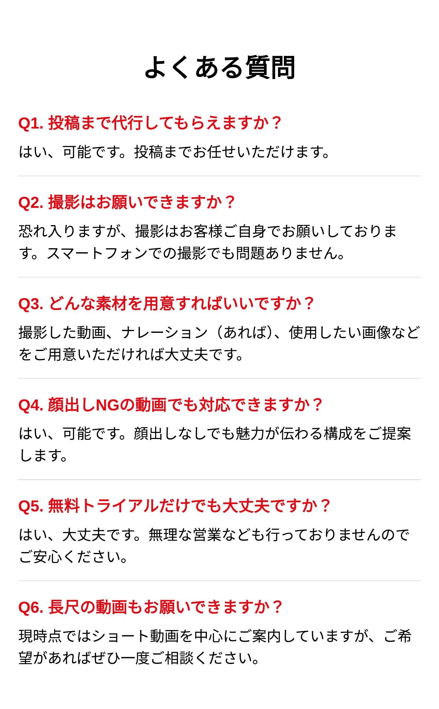私たちのショート動画代行では、撮影いただいた素材をもとに編集・投稿まで対応。