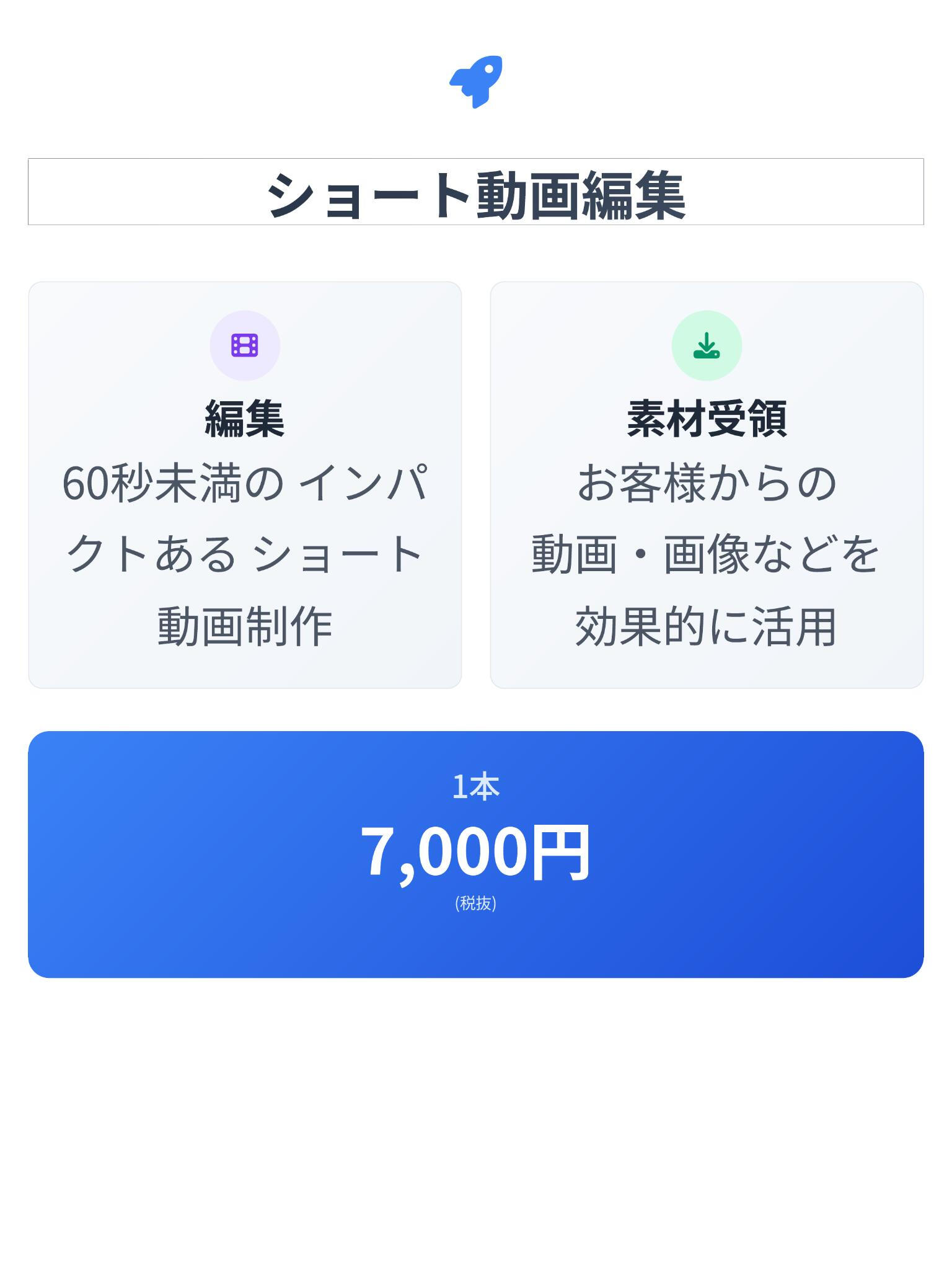 初回限定:動画編集(60秒未満)を5,000円で1本お試しいただけます。